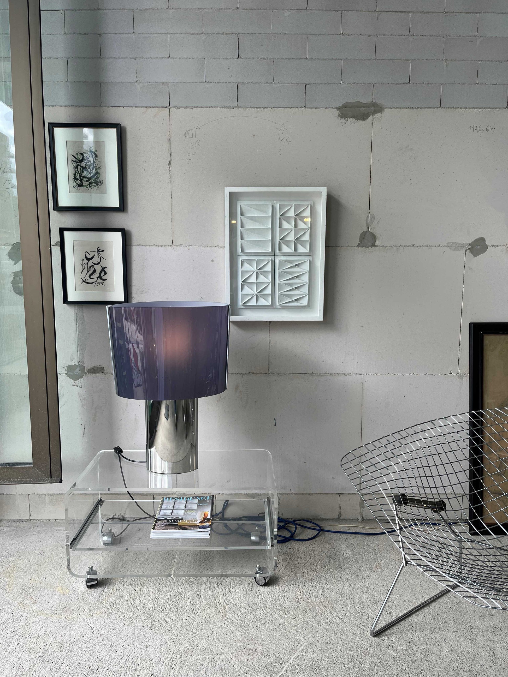 Dada de Negri Tischleuchte für Knoll. Edition aus verchromtem Metall und Lampenschirm aus blauem Plexiglas aus den 1970er Jahren.